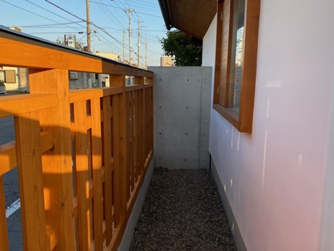 以前は少し物足りなさを感じていた外観ですが、この木塀が加わったことにより木の温かみが増し、高級感が出て建物が引き立ちました。