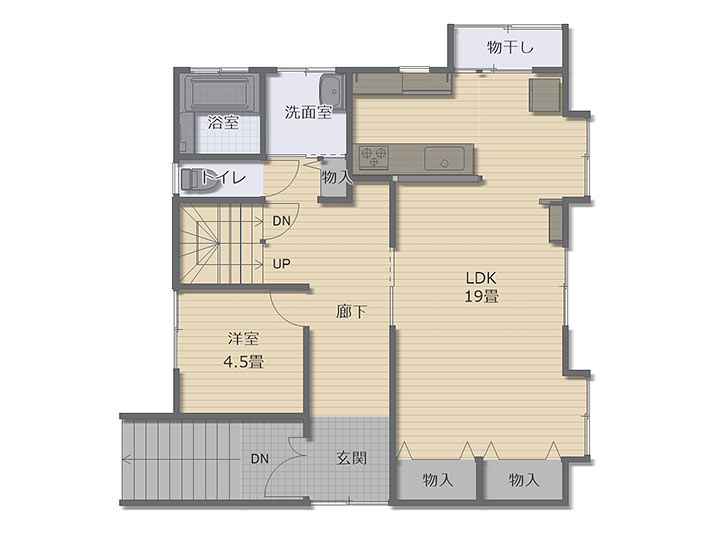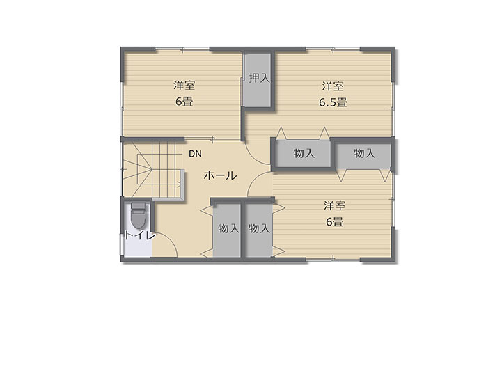 部屋数は4LDK、3階各部屋に収納が付いています。