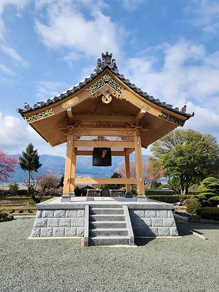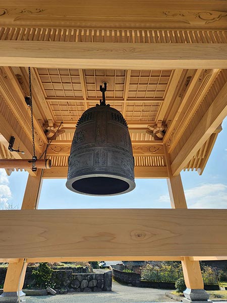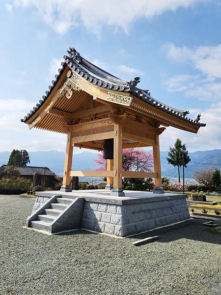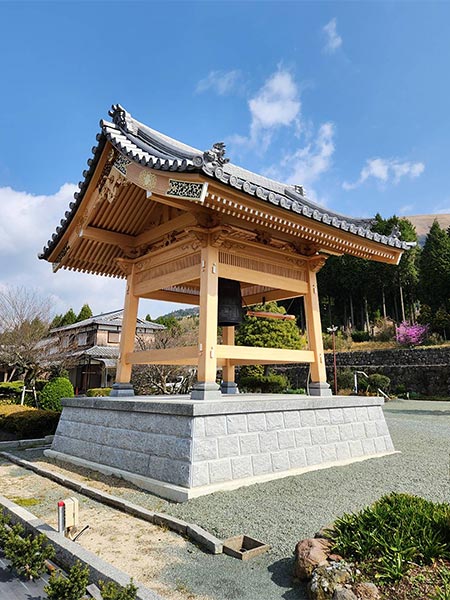熊本県阿蘇郡南阿蘇村にある浄土真宗本願寺派光雲寺様の鐘楼改修工事です。 熊本震災の影響により旧鐘楼も被災し、今回改修工事が行われました。社寺建築の美しい曲線美と美しい木材が際立つ造りとなっており、南阿蘇の自然豊かな場所に建立した鐘楼からは心に響く梵鐘の音が響き渡ります。