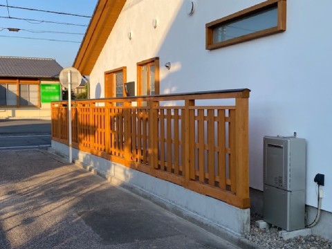 以前は少し物足りなさを感じていた外観ですが、この木塀が加わったことにより木の温かみが増し、高級感が出て建物が引き立ちました。